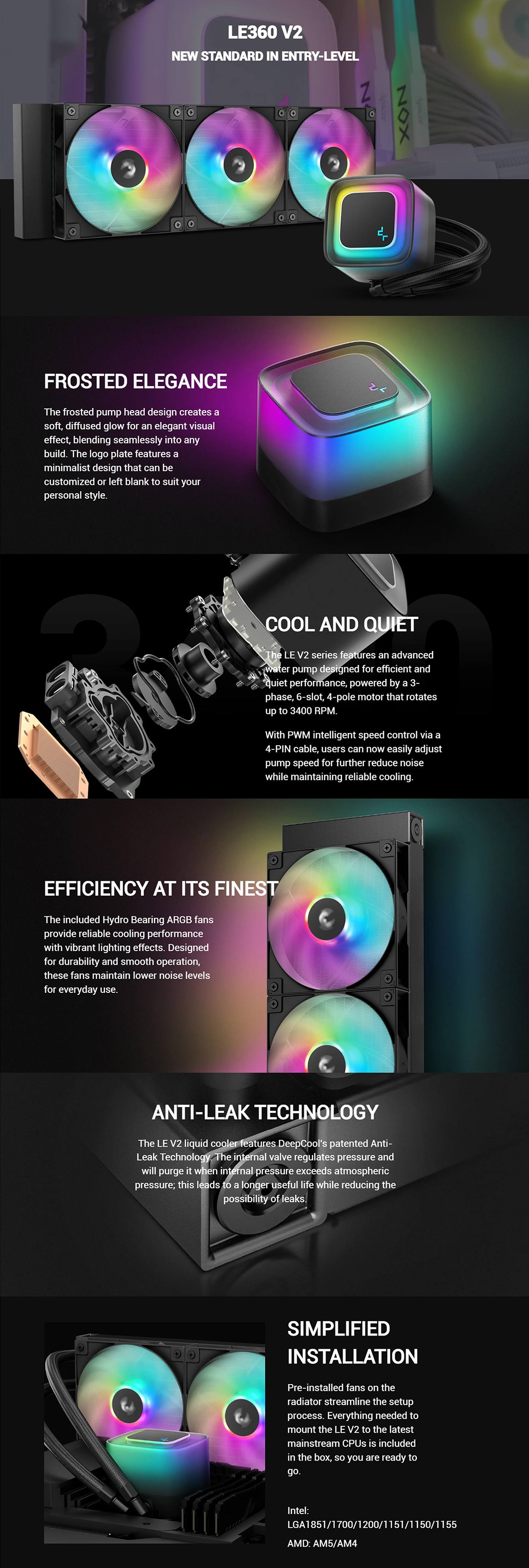 DeepCool LE360 V2 CPU Cooler, 360mm Radiator, 120mm Hydro Bearing Fan, Compatible with Intel 1851, 1700, 1200, 1151, 1150, 1155, AMD AM5, AM4
