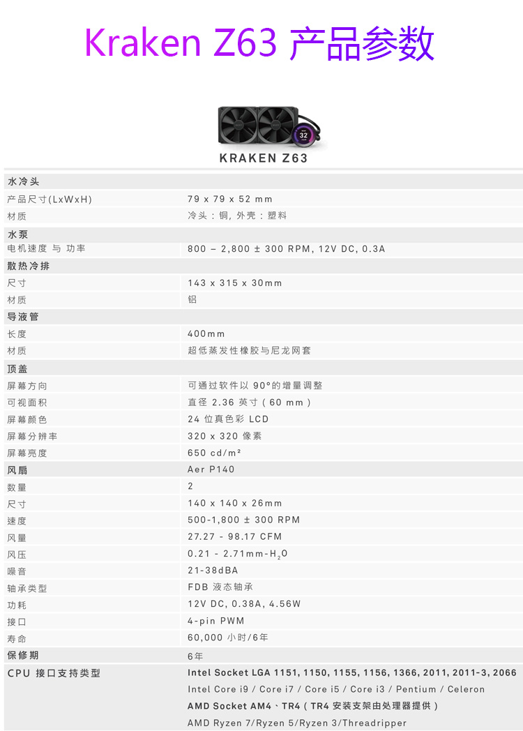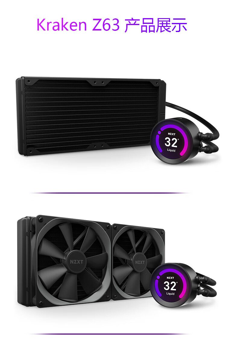 NZXT Kraken Z63 Liquid CPU Cooler, 280mm Radiator, 2.36in customizable LCD screen, Aer-P Radiator-Optimised 140mm Fan x2, Reinforced Extended Tubing, NZXT CAM Powered with Advanced Lighting Modes, Compatible with AMD Threadripper CPU up to 280W